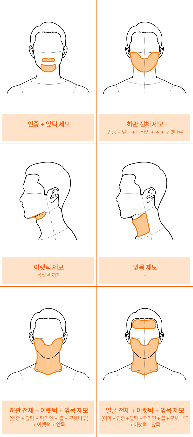 *이마+인중+앞턱+턱라인+볼+구렛나루+아랫턱(목젖위까지)+앞목